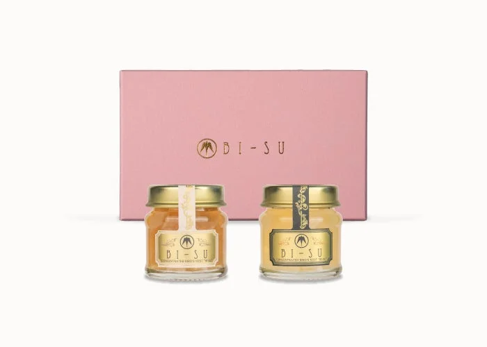 Este set incluye dos botellas del icónico “BI-SU16”, el nido de golondrina natural embotellado. Podrás probar la versión “sin azúcar” para apreciar el sabor puro del ingrediente y la versión con “azúcar de remolacha” para un toque de dulzura. ¡Ideal para comparar y disfrutar!
