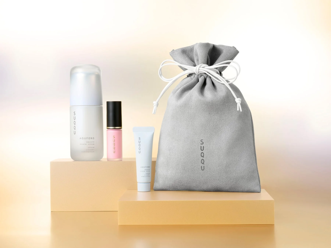 Si compras productos de la línea Aqufons por un total de 16,500 yenes (impuestos incluidos) o más, incluyendo al menos un artículo de Aqufons, recibirás un mini serum Aqufons Smooth Renew Serum (10mL) y un estuche original.
