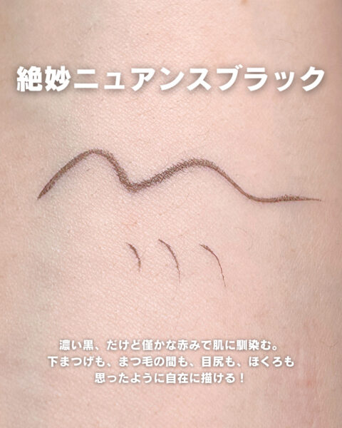 植毛級の自然で繊細でリアルな下まつげを描ける0.01mmの極細毛のアイライナーは目尻やほくろを書くのも上手に描ける。