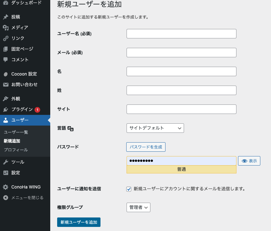 4: Application Passwordsでパスワードを生成するで行ったことと同じことを新しいユーザーでも行います(作成しなおし)
