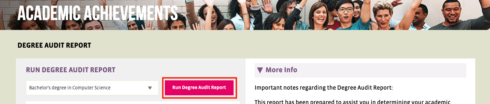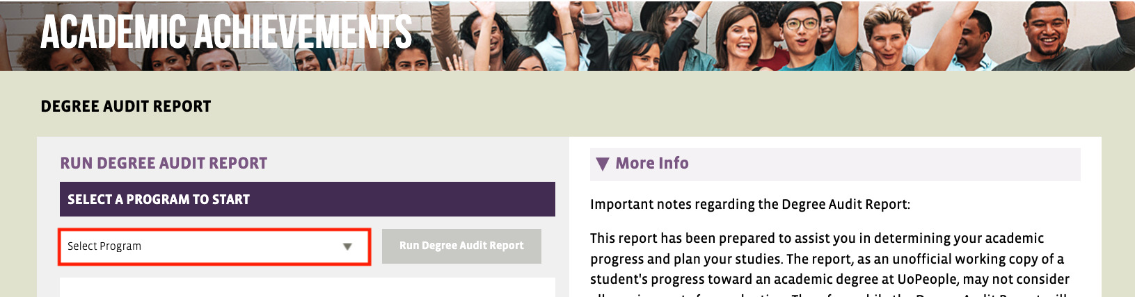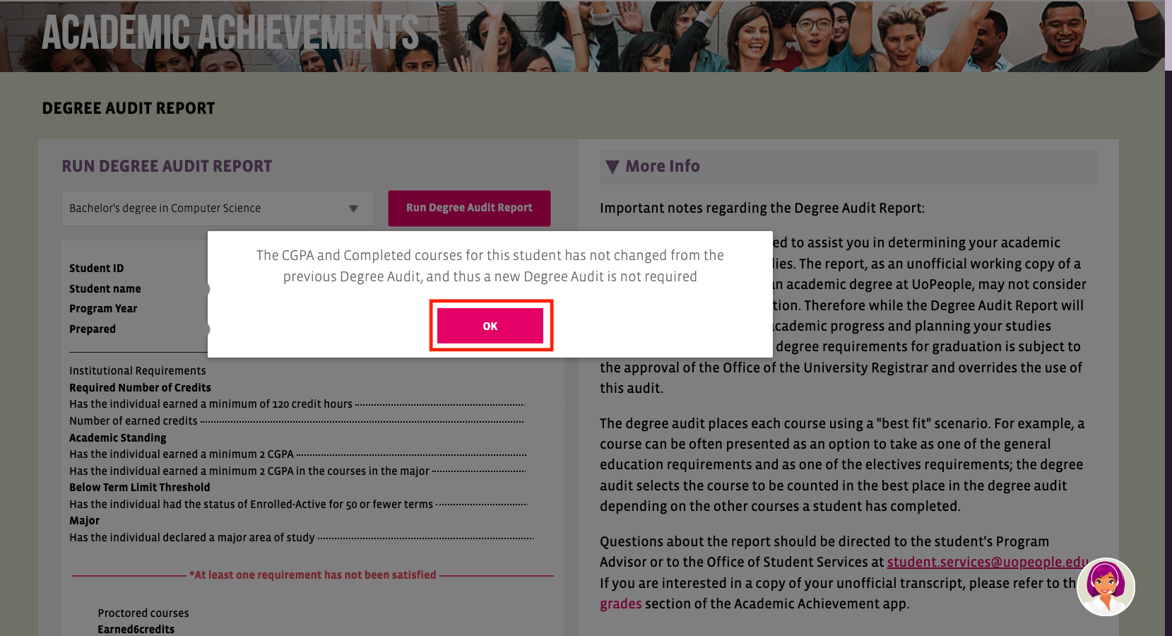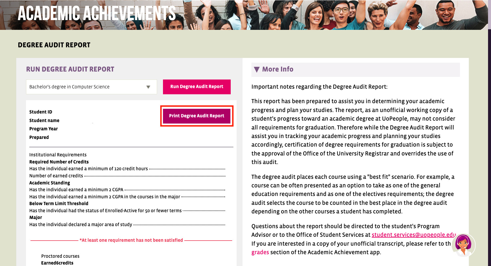 UoPeople PortalのAcademic AchievementsからDegree Audit Reportを開く